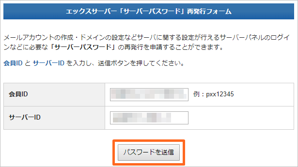 ログインができなかった人は、サーバーパスワード再発行フォームから再発行を行いましょう。