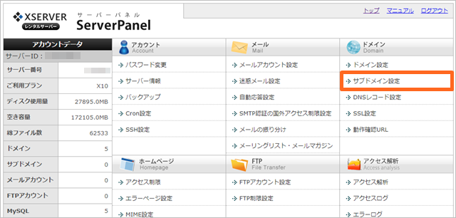 エックスサーバーでは、1つのドメインにつきサブドメインを無制限に登録できます。